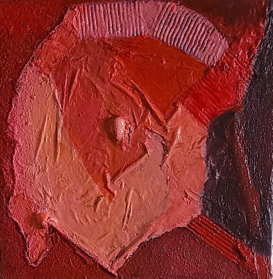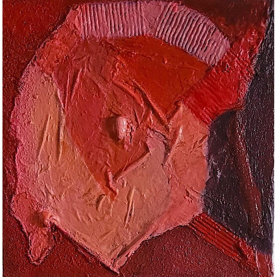 L’opera si presenta come una composizione astratta fortemente materica, in cui il colore non è semplice veicolo espressivo ma vera e propria sostanza emotiva. Le tonalità dominanti — rossi terrosi, rosa spenti e bruni — evocano una dimensione carnale e viscerale, quasi organica, suggerendo una tensione tra corpo e superficie pittorica. La spatolatura evidente e le incisioni ritmiche sulla materia creano un dialogo tra gesto controllato e impulso istintivo.