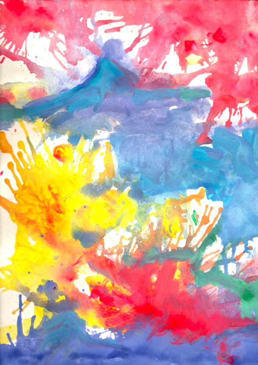 Il gesto pittorico è libero ma non casuale: le tracce delle mani, le colature e le sovrapposizioni rivelano un dialogo diretto tra corpo e superficie, in cui l’atto del dipingere diventa testimonianza del tempo e dell’emozione vissuta. La materia sembra depositarsi per stratificazioni successive, come se l’opera fosse il risultato di un processo più che di un’immagine premeditata.