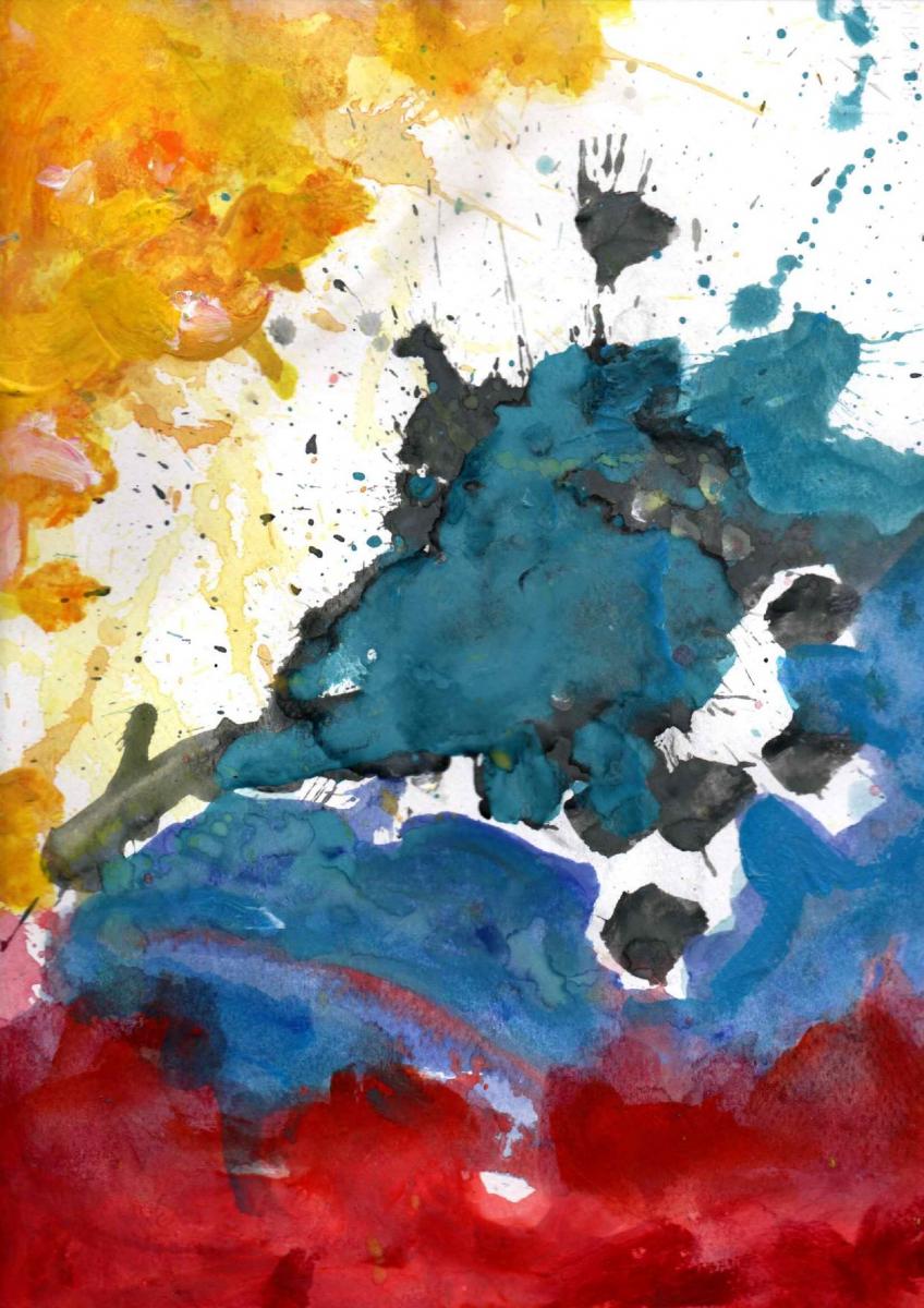 Dal punto di vista materico, le colature, le macchie e le sovrapposizioni rivelano un dialogo tra controllo e casualità. L’artista sembra accettare l’imprevisto come parte integrante del processo creativo, lasciando che l’acqua e il pigmento generino forme autonome. Ne deriva un’immagine aperta, non descrittiva, che invita lo spettatore a proiettare il proprio immaginario piuttosto che a cercare un significato univoco.