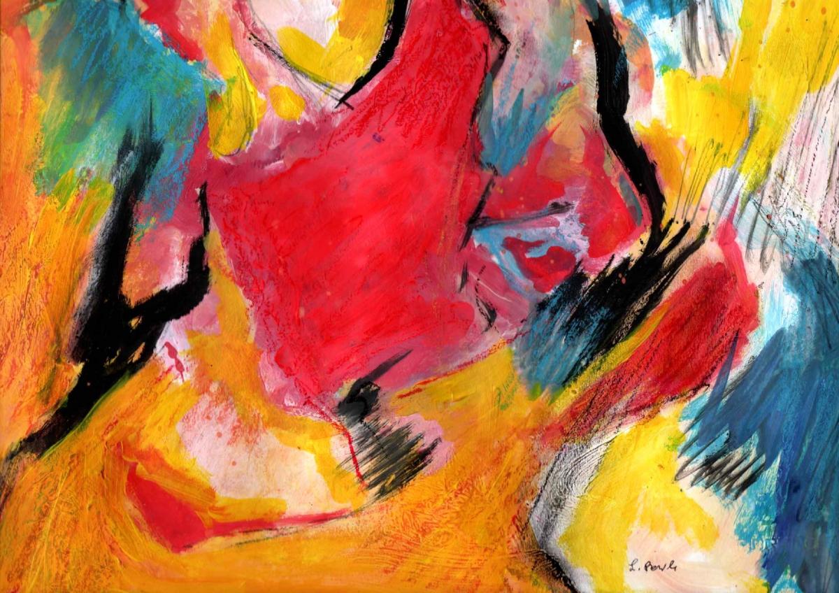Quest’opera si presenta come un’esplosione gestuale di colore e materia, in cui la figurazione sembra affiorare solo per poi dissolversi immediatamente nel ritmo pittorico. Il rosso dominante, centrale e pulsante, agisce come un nucleo emotivo attorno al quale ruotano gialli incandescenti, azzurri frammentati e neri incisivi, che non delimitano forme ma ne suggeriscono il movimento. Non siamo di fronte a una rappresentazione, bensì a una tensione: il quadro accade più che descrivere.