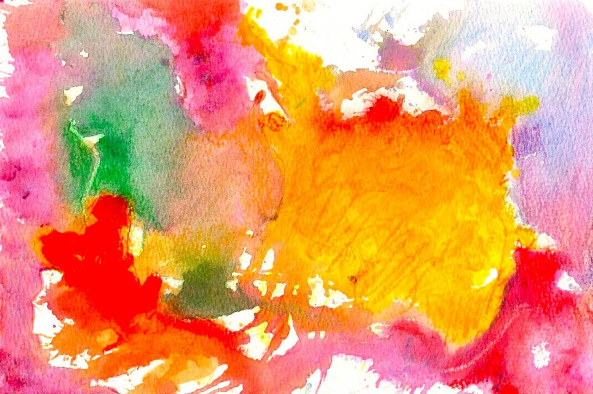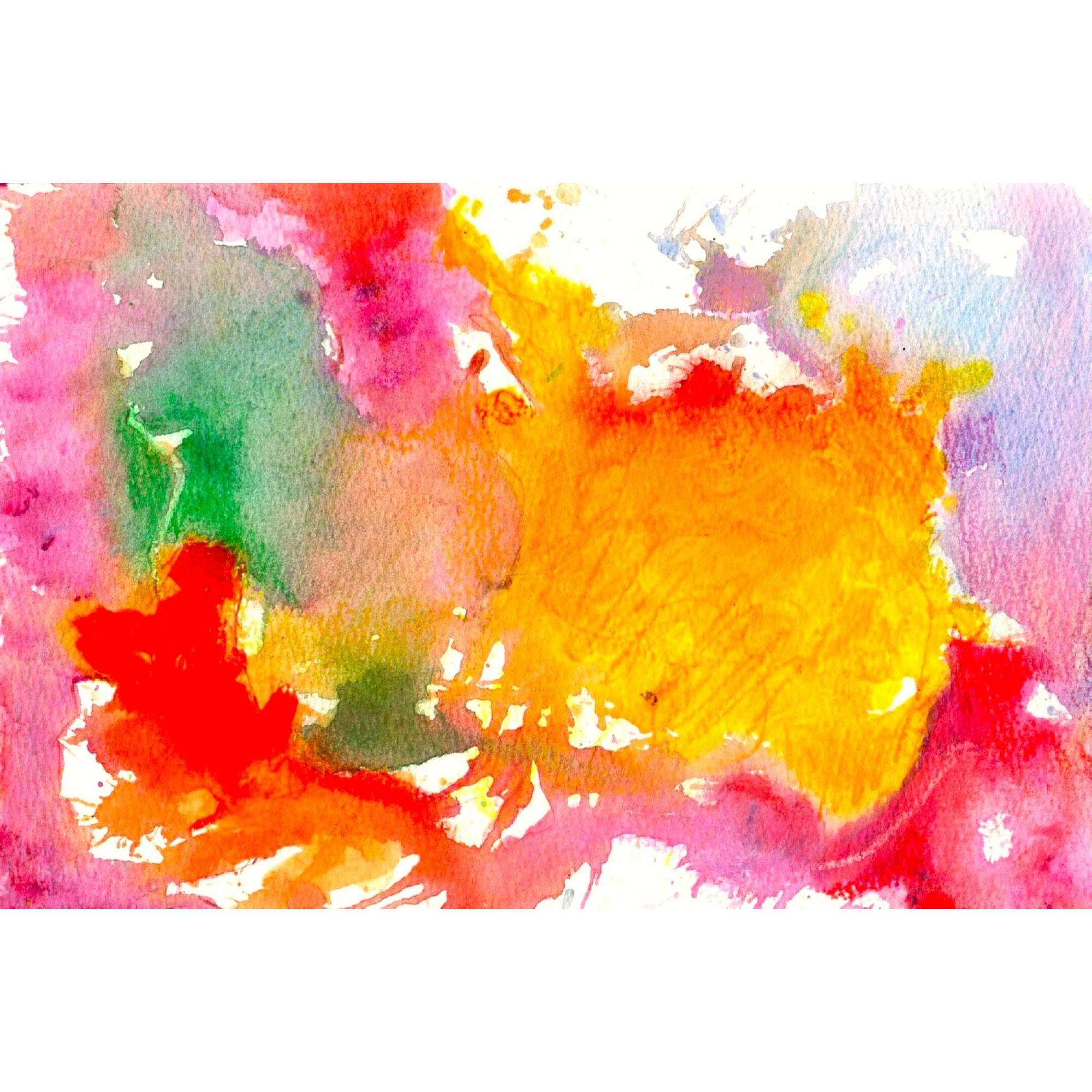 Quest’opera si presenta come un’esplosione cromatica che rifiuta qualsiasi ancoraggio figurativo per affidarsi interamente alla forza emotiva del colore. La composizione, apparentemente spontanea, è costruita attraverso campiture fluide e sovrapposizioni trasparenti che rivelano una pratica affine all’acquerello: i pigmenti si espandono, si incontrano e si contaminano, generando zone di tensione e dissolvenza.