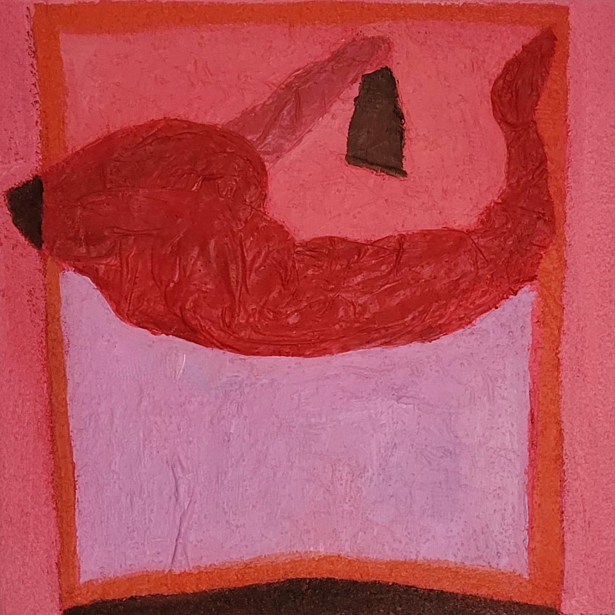 Quest’opera si impone immediatamente per la sua forza cromatica: una dominante di rossi caldi, saturi e quasi monocordi, che costruiscono un’atmosfera densa, viscerale, persino oppressiva. Il colore non è semplicemente un mezzo espressivo, ma diventa il vero soggetto del lavoro, avvolgendo e inglobando la forma fino a renderla ambigua.