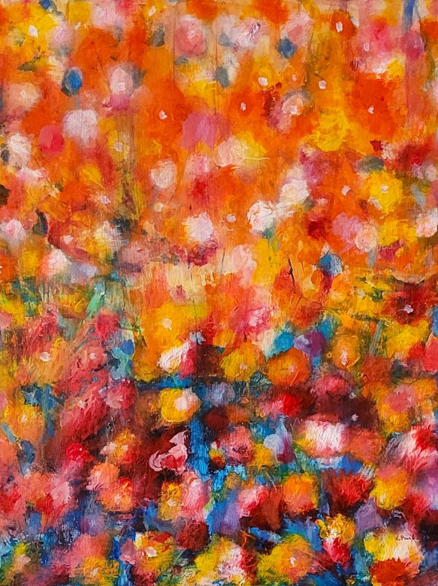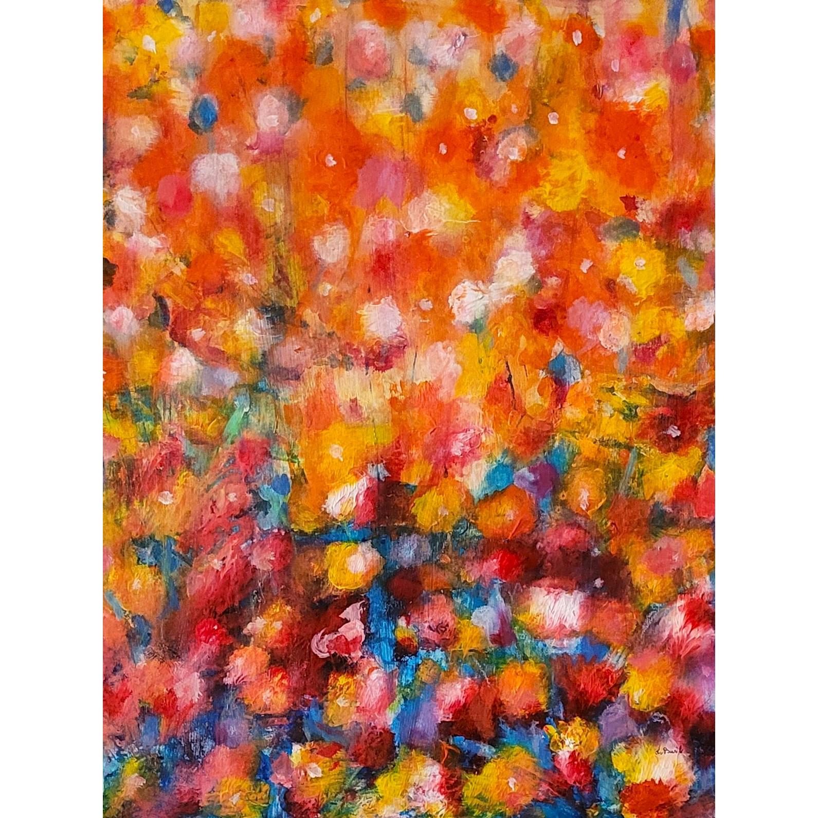 Dal punto di vista interpretativo, l’opera può essere letta come una celebrazione della vitalità—una sorta di paesaggio emotivo più che naturale. Potrebbe evocare un giardino in piena fioritura, ma filtrato attraverso la memoria e la percezione soggettiva. In questo senso, il lavoro si colloca in una tradizione pittorica che privilegia l’esperienza interiore rispetto alla rappresentazione oggettiva.